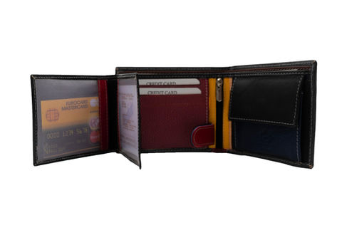 Features: top zip fastening, multiple card slots, inside zip pocket and bill compartment.